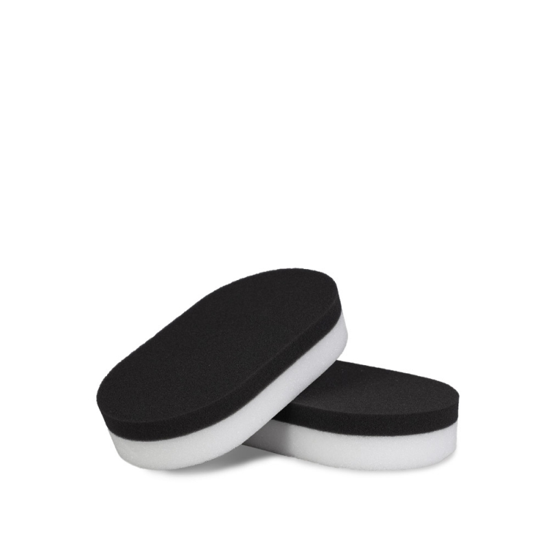 Dual võtab klassikalise tri foam aplikaatori toote parimad omadused. Suurus ja kuju on samad, kuid valge poole peal on nüüd parem vaht käsitsi poleerimiseks ja ebavajalik keskmine osa on ära jäetud ja aplikaator suudab nüüd autode kerejooni paremini järgida. Tugev valge külg sobib suurepäraselt kasutamiseks Tripple, Rejuvenate ja Tough Prep toodetega värvi poleerimiseks. Pehme must külg sobib ideaalselt vaha ja hermeetiku pealekandmiseks. (pakendis 2) Suurus: 15 cm x 9 cm x 3 cm