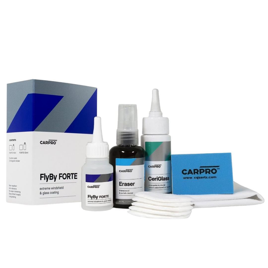 FlyByForte’i on testitud enam kui 40 000 reaalajas klaasipuhastite puhastustsükli jaoks, see on UV-stabiilne, väga kemikaalikindel ning tagab vastupidavuse kriimustustele ja väikestele laastudele. FlyByForte on tuuleklaasi- ja klaasikatete ülim! Erinevalt traditsioonilistest klaasist katetest, mis kinnituvad pinnale, haakub FlyByForte täielikult läbi klaasi pealmise pinna, sulandudes ja muutes selle hüdrofoobseks siledaks pinnaks. FlyByForte ei luba lobisemist, klaasipuhasti müra ega klaasi halvenemist. Eeldatav vastupidavus on kuni 2 aastat.