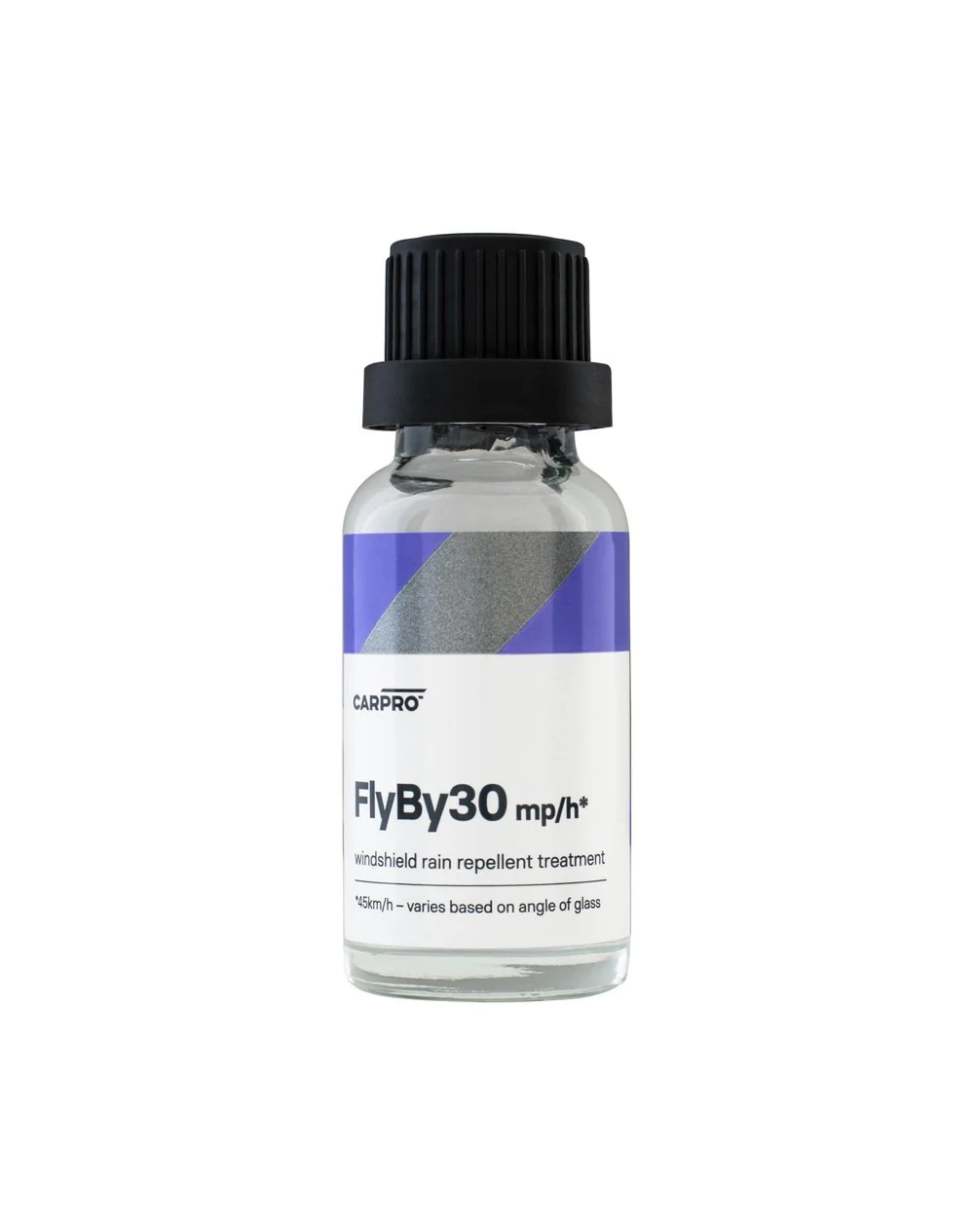 FlyBy30 tõrjub veepiisad alates kiirusest 30–40 miili tunnis ja võimaldab teil ohutu sõidu ajal selget nägemust näha. * Kiirus sõltub tuuleklaasi kaldenurgast, keskmine testitud 45 kraadi juures. nurk).