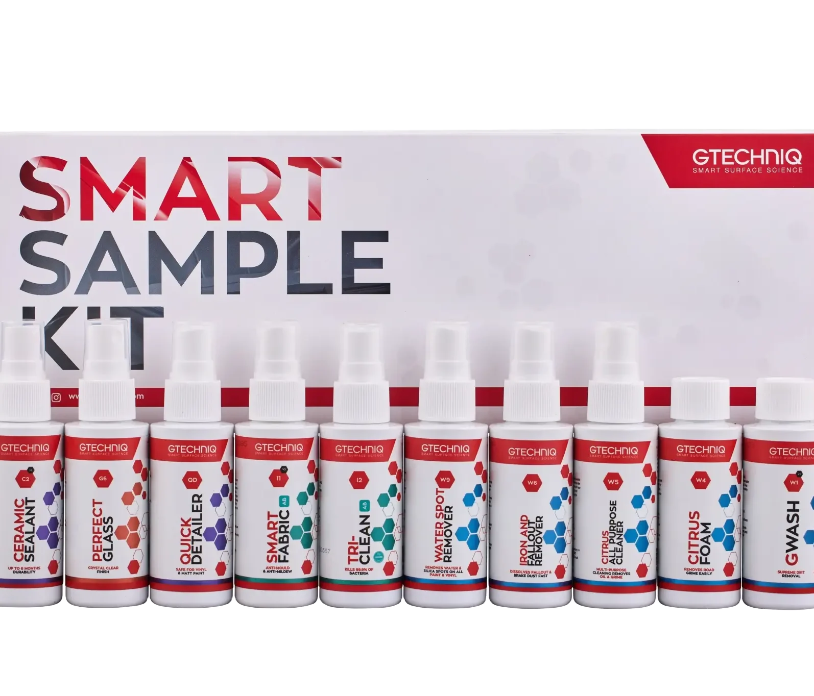 Gtechniq Smart Sample Set on suurepärane kingitus igale autohuvilisele. See komplekt sisaldab 10 Gtechniqi populaarseimat toodet 50 ml pudelites, mis on kaunilt pakendatud esitluskasti. See on suurepärane võimalus tutvuda Gtechniqi hooldustoodete valikuga.