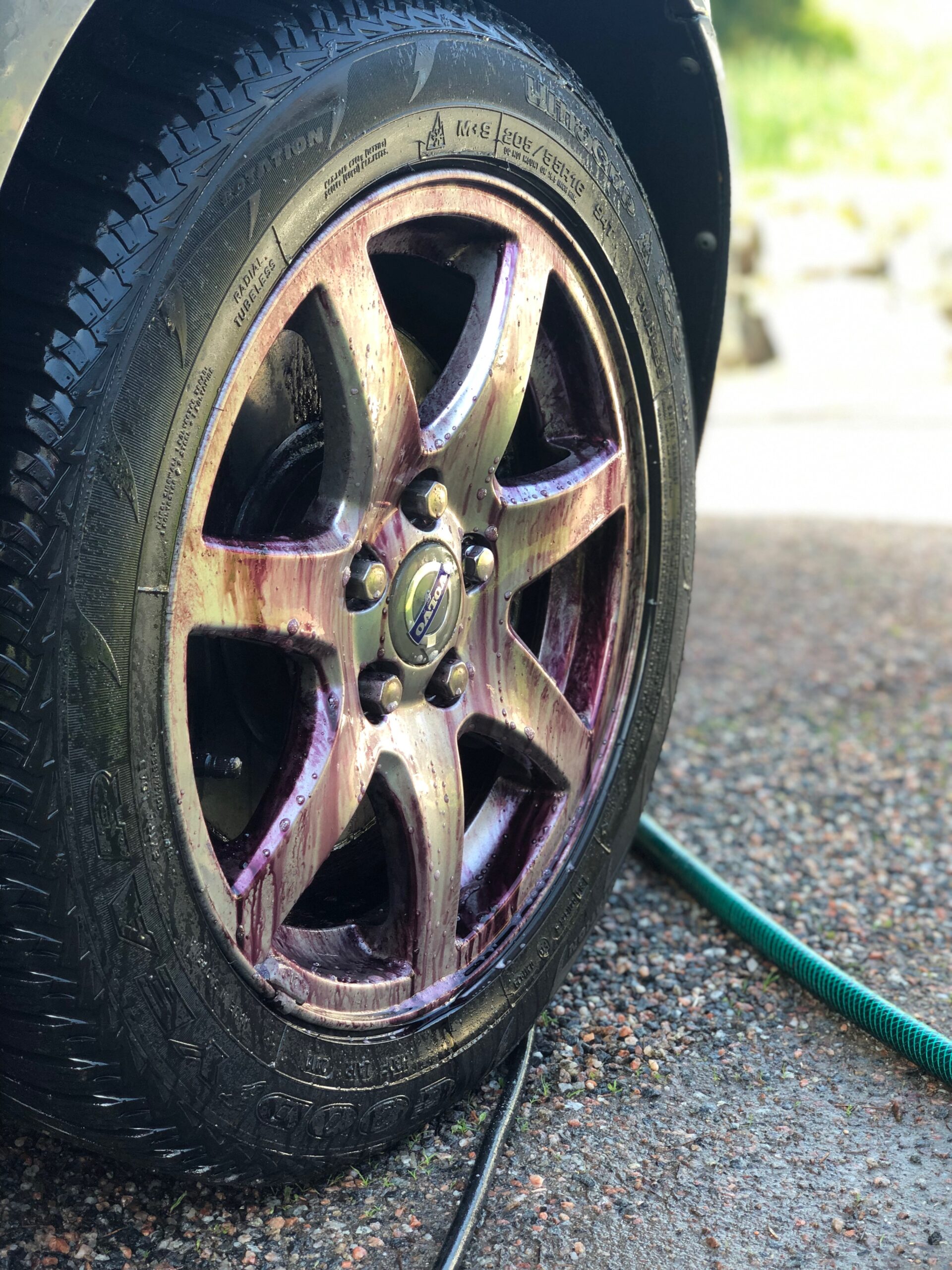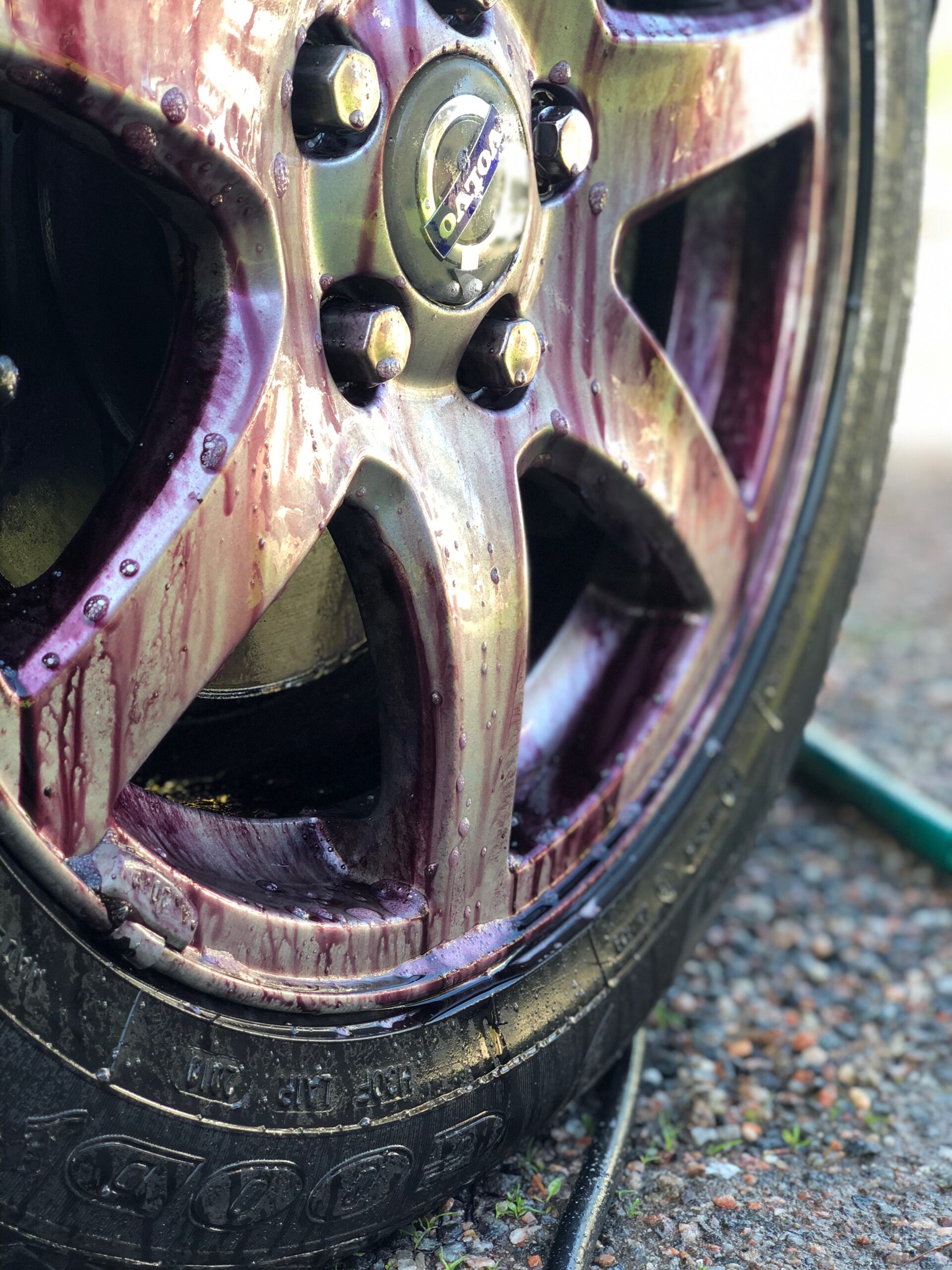- Puhastab velgedelt kinni paakunud ja põlenud mustuse ( piduritolm, maantemustus, veest ja naastudest tulenev raudoksiid).